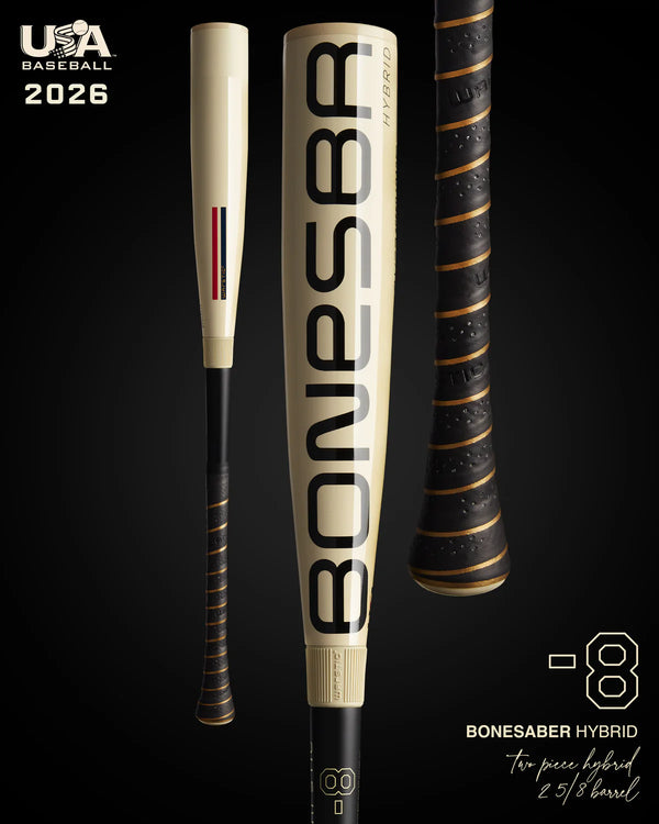 The 2026 Bonesaber Hybrid USA Metal Baseball Bat is highly recommended for its excellent quality, fantastic pop, and great balance. Customers appreciate its great feel and the comfort provided by the handle. The bat also features a new look and comes with a 12-month warranty.