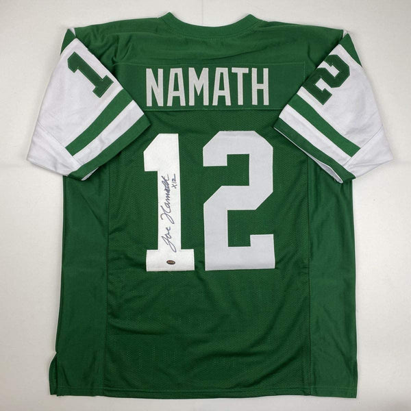 Autographed/Signed Joe Namath New York Green Football Jersey GTSM COA Holo Only
