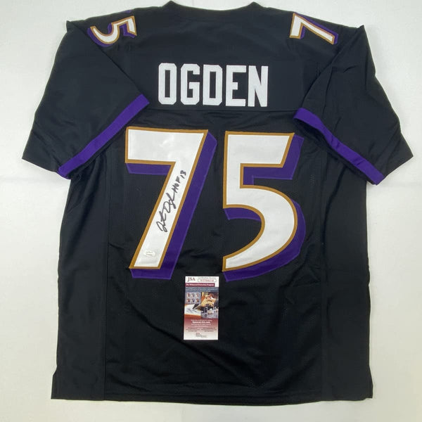 Autographed/Signed Jonathan Ogden HOF 13 Baltimore Black Football Jersey JSA COA