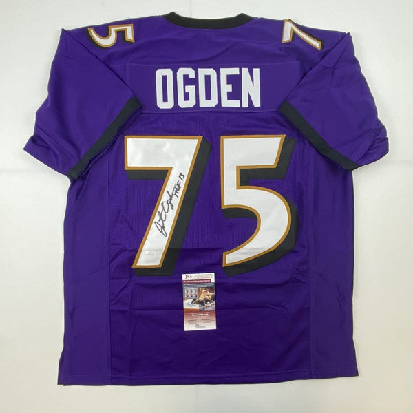 Autographed/Signed Jonathan Ogden HOF 13 Baltimore Purple Football Jersey JSA COA