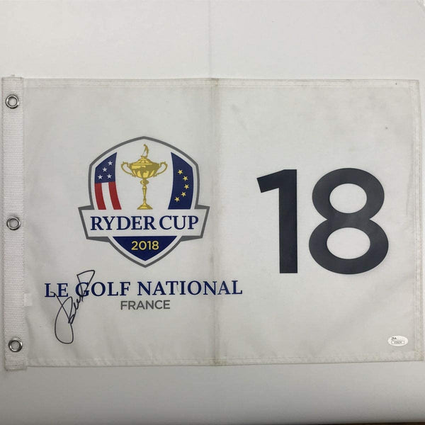 Autographed/Signed Jordan Spieth 2018 Ryder Cup France PGA Championship Golf Flag/Pin JSA COA