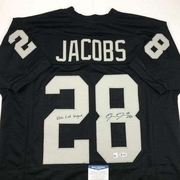 Autographed/Signed Josh Jacobs Viva Las Vegas Oakland Black Football Jersey Beckett BAS COA
