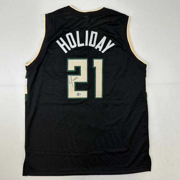 Autographed/Signed Jrue Holiday Milwaukee Black Basketball Jersey Beckett BAS COA