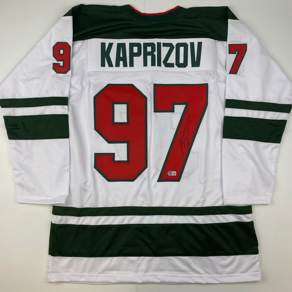 Autographed/Signed Kirill Kaprizov Minnesota White Hockey Jersey Beckett BAS COA