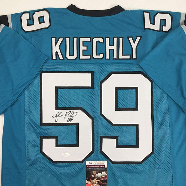 Autographed/Signed Luke Kuechly Carolina Blue Football Jersey JSA COA