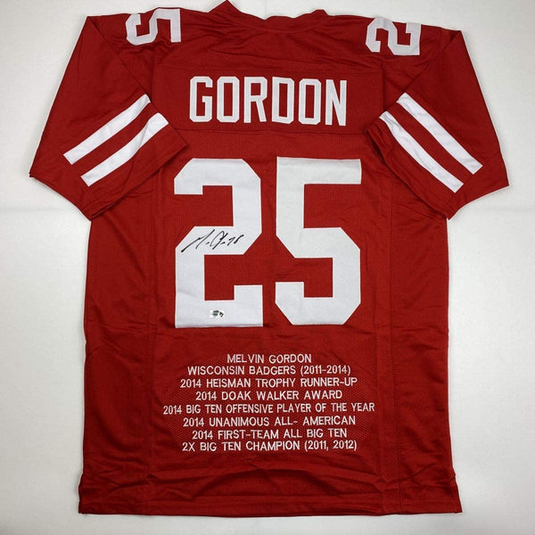 Autographed/Signed Melvin Gordon III Wisconsin Red Stat College Football Jersey Athlete Hologram COA