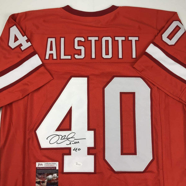 Autographed/Signed Mike Alstott Tampa Bay Retro Orange Football Jersey JSA COA