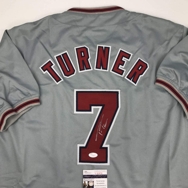 Autographed/Signed Trea Turner Washington Grey Baseball Jersey JSA COA
