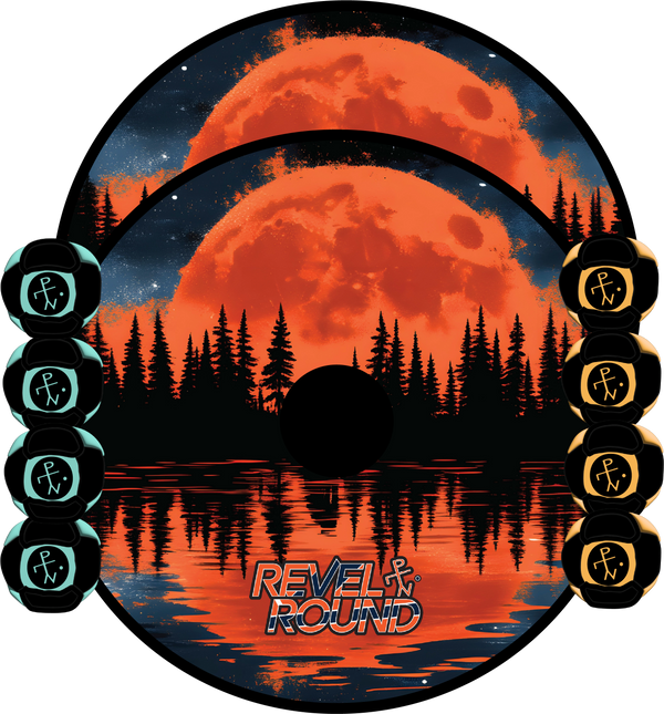The Blood Moon Edition brings bold nighttime energy to every toss. With a blazing red moon rising over silhouetted pines and reflected in still lake water, this set looks like it was made for late-night legends, firepit duels, and anyone who doesn’t pack it in when the sun goes down.