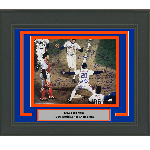 Framed Autographed/Signed 1986 New York Mets Team 26x Sigs World Series Champions 16x20 Baseball Photo JSA COA #1