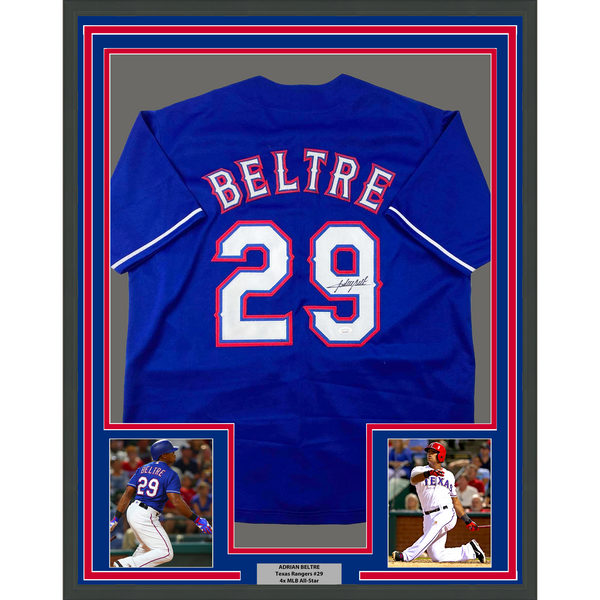 Framed Autographed/Signed Adrian Beltre 35x39 Texas Blue Baseball Jersey JSA COA
