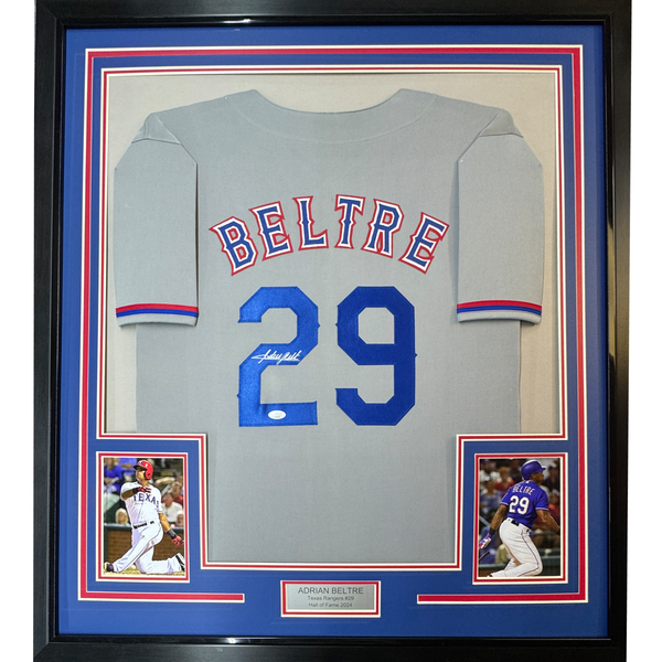 Framed Autographed/Signed Adrian Beltre 35x39 Texas Grey Baseball Jersey JSA COA