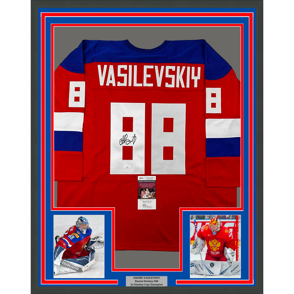 Framed Autographed/Signed Andrei Vasilevskiy 35x39 Team Russia Red Olympics Hockey Jersey JSA COA