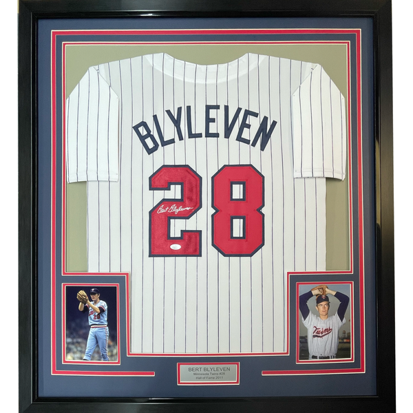Framed Autographed/Signed Bert Blyleven 35x39 Minnesota Pinstripe Baseball Jersey JSA COA