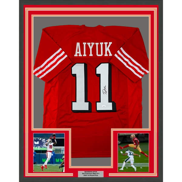Framed Autographed/Signed Brandon Aiyuk 35x39 San Francisco Alternate Red Football Jersey JSA COA