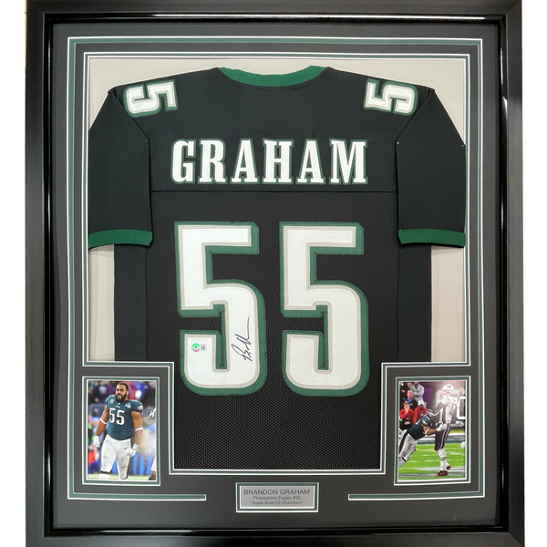 Framed Autographed/Signed Brandon Graham 35x39 Philadelphia Black Football Jersey JSA COA