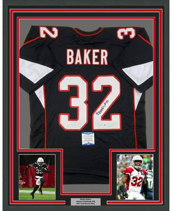 Framed Autographed/Signed Budda Baker 35x39 Arizona Black Football Jersey Beckett BAS COA