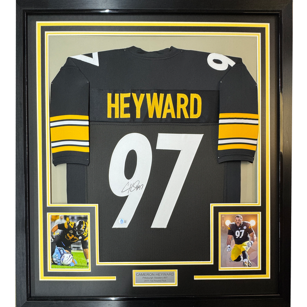 Framed Autographed/Signed Cameron Cam Heyward 35x39 Pittsburgh Black Football Jersey JSA COA