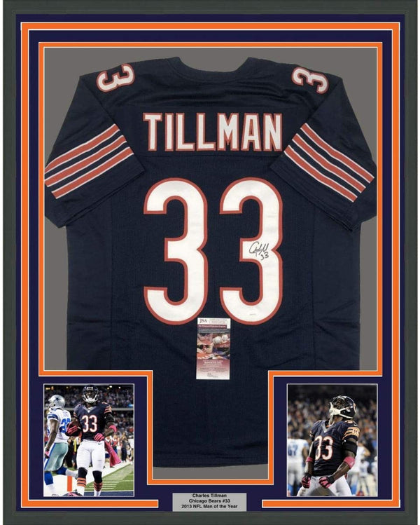 Framed Autographed/Signed Charles Tillman Peanut 35x39 Chicago Blue Football Jersey JSA COA