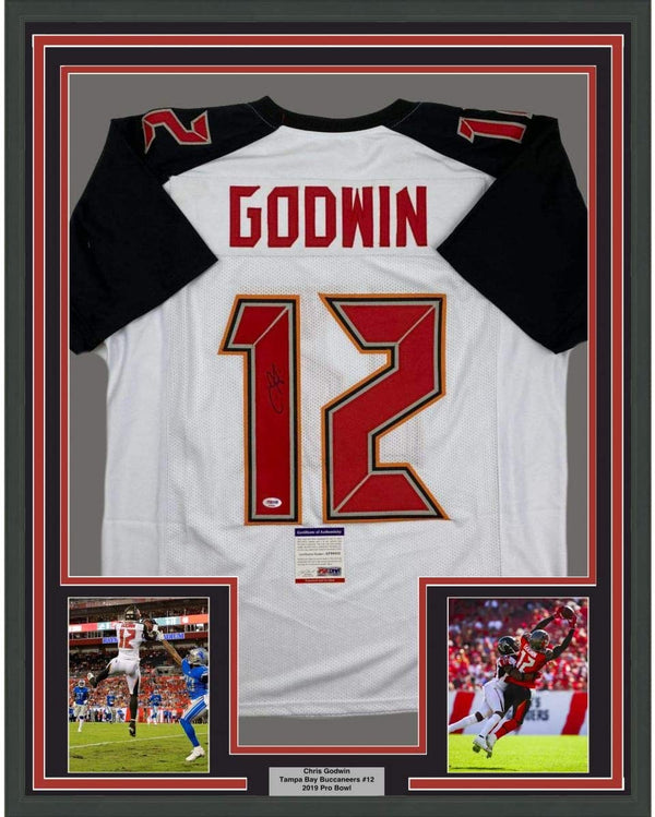 Framed Autographed/Signed Chris Godwin 35x39 Tampa Bay White Football Jersey PSA/DNA COA