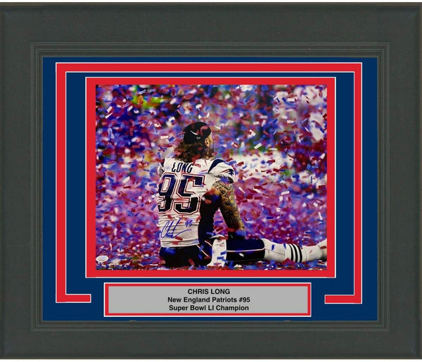 Framed Autographed/Signed Chris Long New England Patriots Super Bowl LI 51 Champions 16x20 Football Photo JSA COA