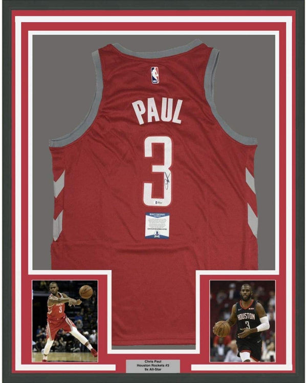 Framed Autographed/Signed Chris Paul 35x39 Houston Rockets Red Basketball Jersey Beckett BAS COA