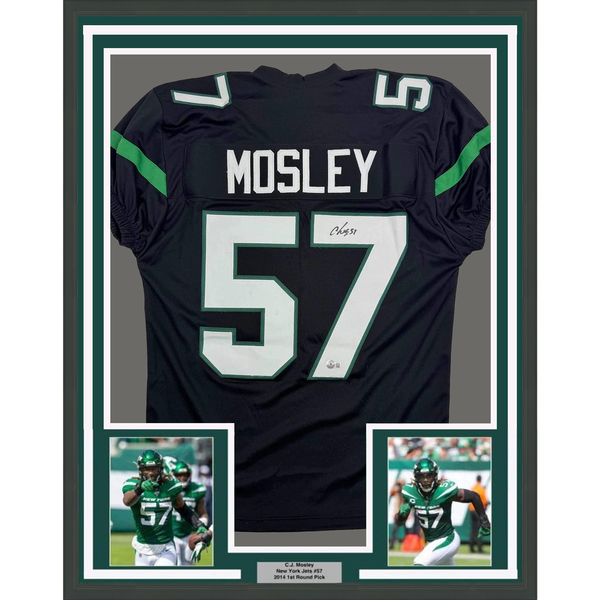 Framed Autographed/Signed CJ C.J. Mosley 35x39 New York Black Football Jersey Beckett BAS COA