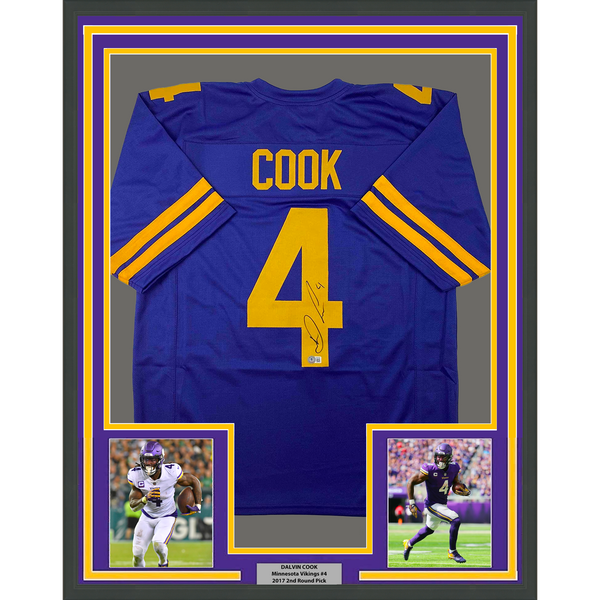 Framed Autographed/Signed Dalvin Cook #4 35x39 Minnesota Color Rush Purple Football Jersey Beckett BAS COA