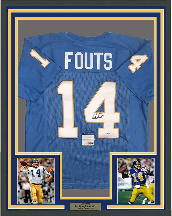 Framed Autographed/Signed Dan Fouts 35x39 San Diego Powder Blue Football Jersey PSA/DNA COA