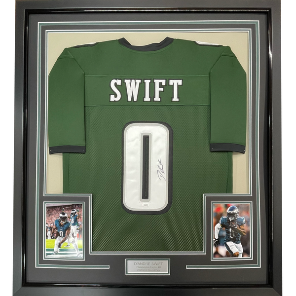 Framed Autographed/Signed D'Andre Swift 35x39 Philadelphia Green Football Jersey JSA COA