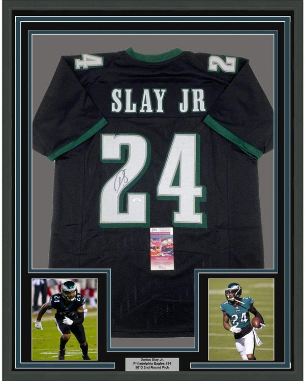 Framed Autographed/Signed Darius Slay Jr. 35x39 Philadelphia Black Football Jersey JSA COA