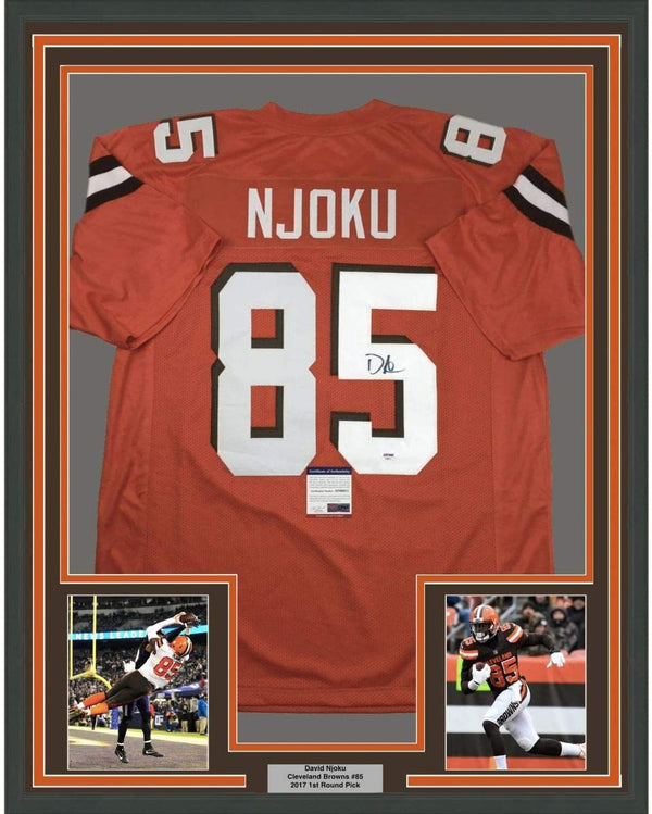 Framed Autographed/Signed David Njoku 35x39 Cleveland Orange Football Jersey PSA/DNA COA