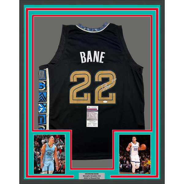 Framed Autographed/Signed Desmond Bane 35x39 Memphis Black Basketball Jersey JSA COA