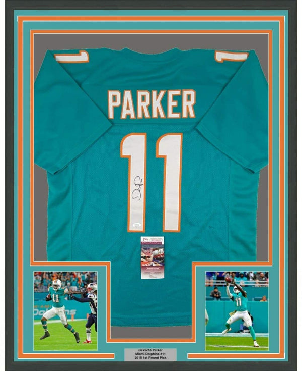 Framed Autographed/Signed Devante Parker 35x39 Miami Teal Football Jersey JSA COA