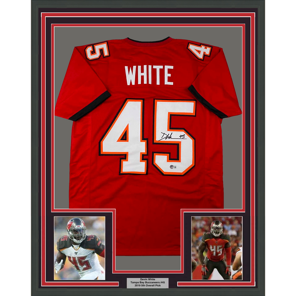 Framed Autographed/Signed Devin White 35x39 Tampa Bay Red Football Jersey Beckett BAS COA
