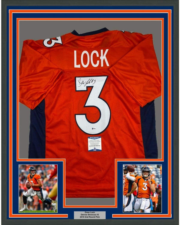 Framed Autographed/Signed Drew Lock Denver Orange Football Jersey Beckett BAS COA