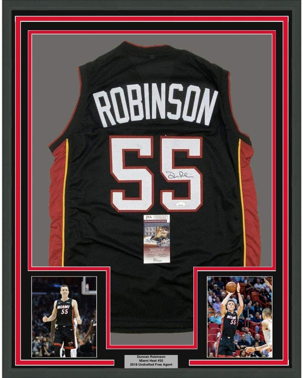 Framed Autographed/Signed Duncan Robinson 35x39 Miami Black Basketball Jersey JSA COA