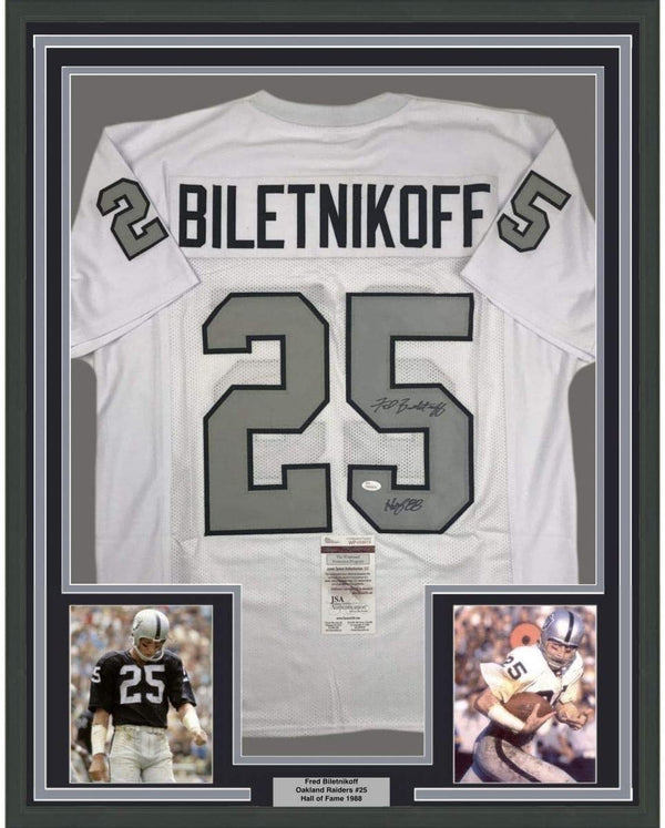 Framed Autographed/Signed Fred Biletnikoff HOF 88 35x39 Oakland Color Rush Football Jersey JSA COA
