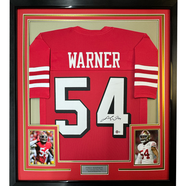 Framed Autographed/Signed Fred Warner 35x39 San Francisco Red Alternate Football Jersey Beckett BAS COA