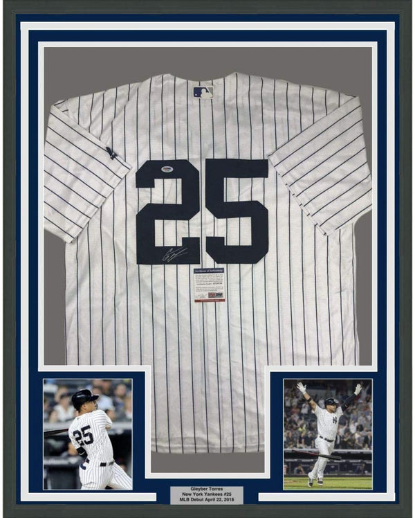 Framed Autographed/Signed Gleyber Torres 35x39 New York Pinstripe Baseball Jersey PSA/DNA COA
