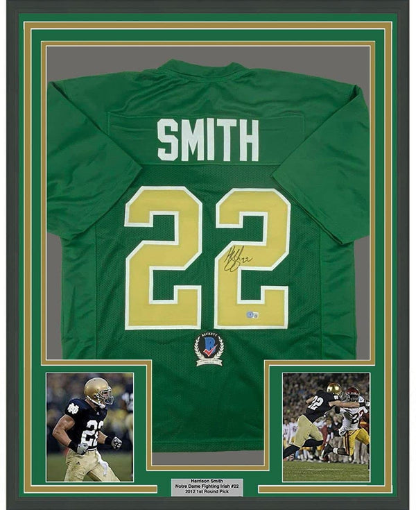 Framed Autographed/Signed Harrison Smith 35x39 Notre Dame Green College Football Jersey Beckett BAS COA