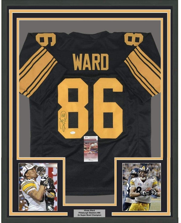 Framed Autographed/Signed Hines Ward 35x39 Pittsburgh Color Rush Football Jersey JSA COA