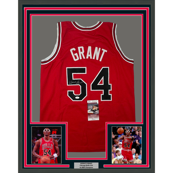 Framed Autographed/Signed Horace Grant 35x39 Chicago Red Basketball Jersey JSA COA