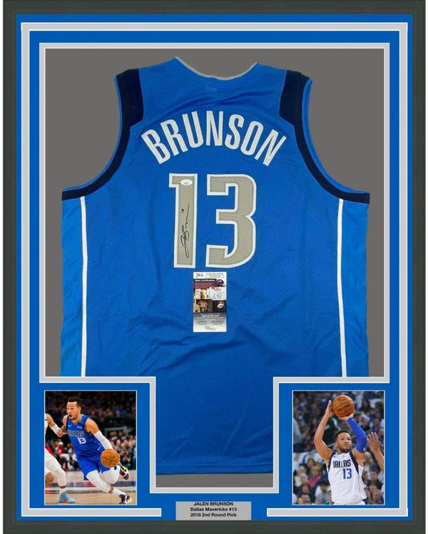 Framed Autographed/Signed Jalen Brunson 35x39 Dallas Light Blue Basketball Jersey JSA COA