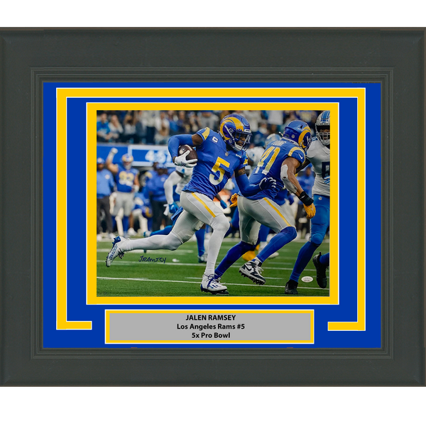 Framed Autographed/Signed Jalen Ramsey Los Angeles LA Rams 16x20 Football Photo JSA COA #1