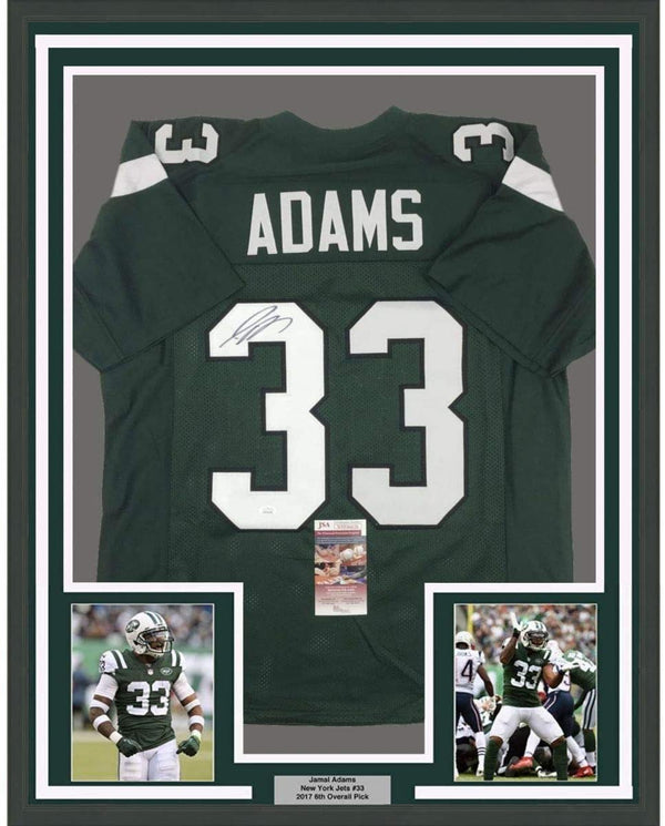 Framed Autographed/Signed Jamal Adams 35x39 New York Green 2019 Football Jersey JSA COA