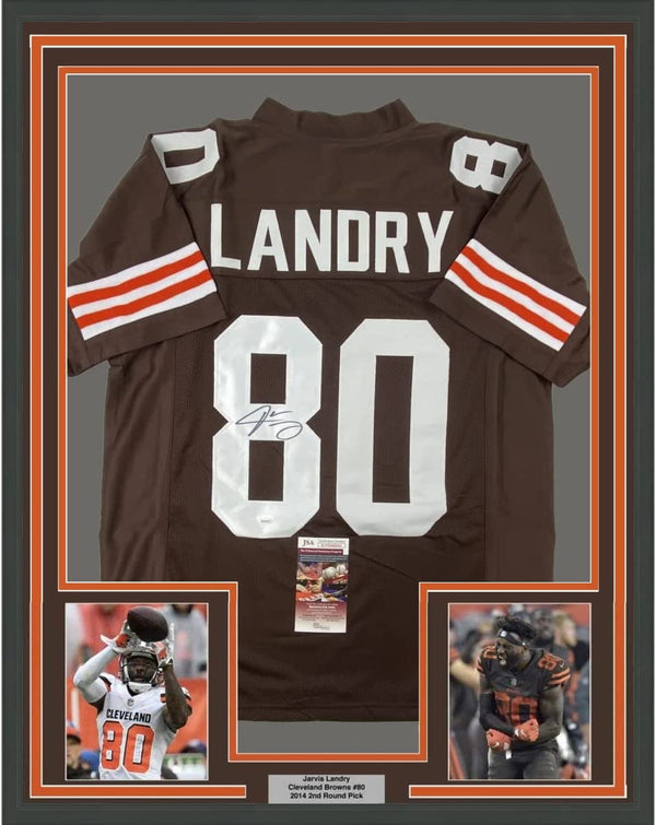 Framed Autographed/Signed Jarvis Landry 35x39 Cleveland Football Brown Jersey JSA COA