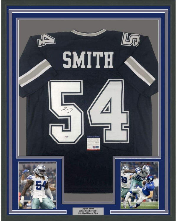 Framed Autographed/Signed Jaylon Smith 35x39 Dallas Dark Blue Football Jersey PSA/DNA COA