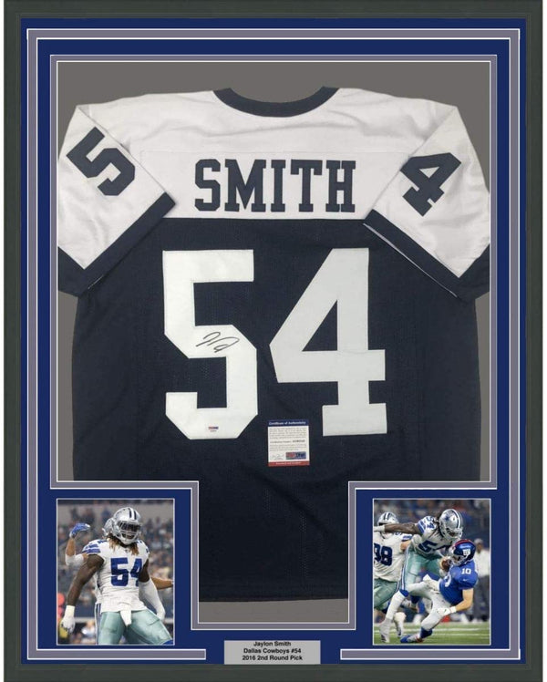 Framed Autographed/Signed Jaylon Smith 35x39 Dallas Thanksgiving Day Football Jersey PSA/DNA COA