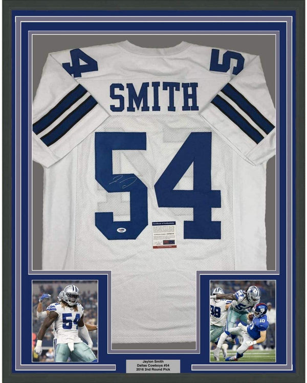 Framed Autographed/Signed Jaylon Smith 35x39 Dallas White Football Jersey PSA/DNA COA